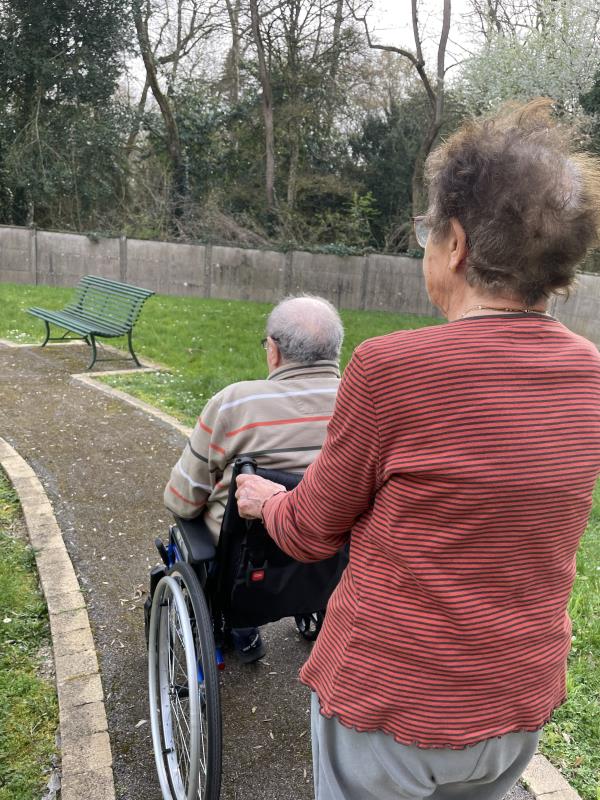 Malgré un soleil discret, la douceur de la température a permis aux résidents de profiter du jardin de l’unité protégée. Ces moments passés à l’extérieur sont très bénéfiques pour le bien-être. L’air frais, la lumière naturelle et le contact avec la nature apportent une sensation d’apaisement et de détente. Être dans le jardin permet aussi de changer d’environnement, de stimuler les sens et d’écouter les bruits de la nature .